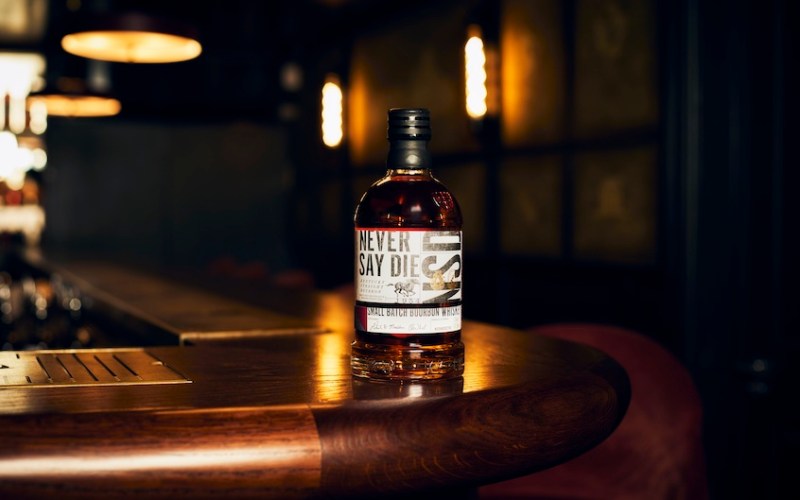Never Say Die Small Batch Bourbon recently “returned home” as it made its US debut. It is said to be the first Kentucky Bourbon to be both ocean-aged (on a six-week trip across the Atlantic) and then further matured in barrels in England.